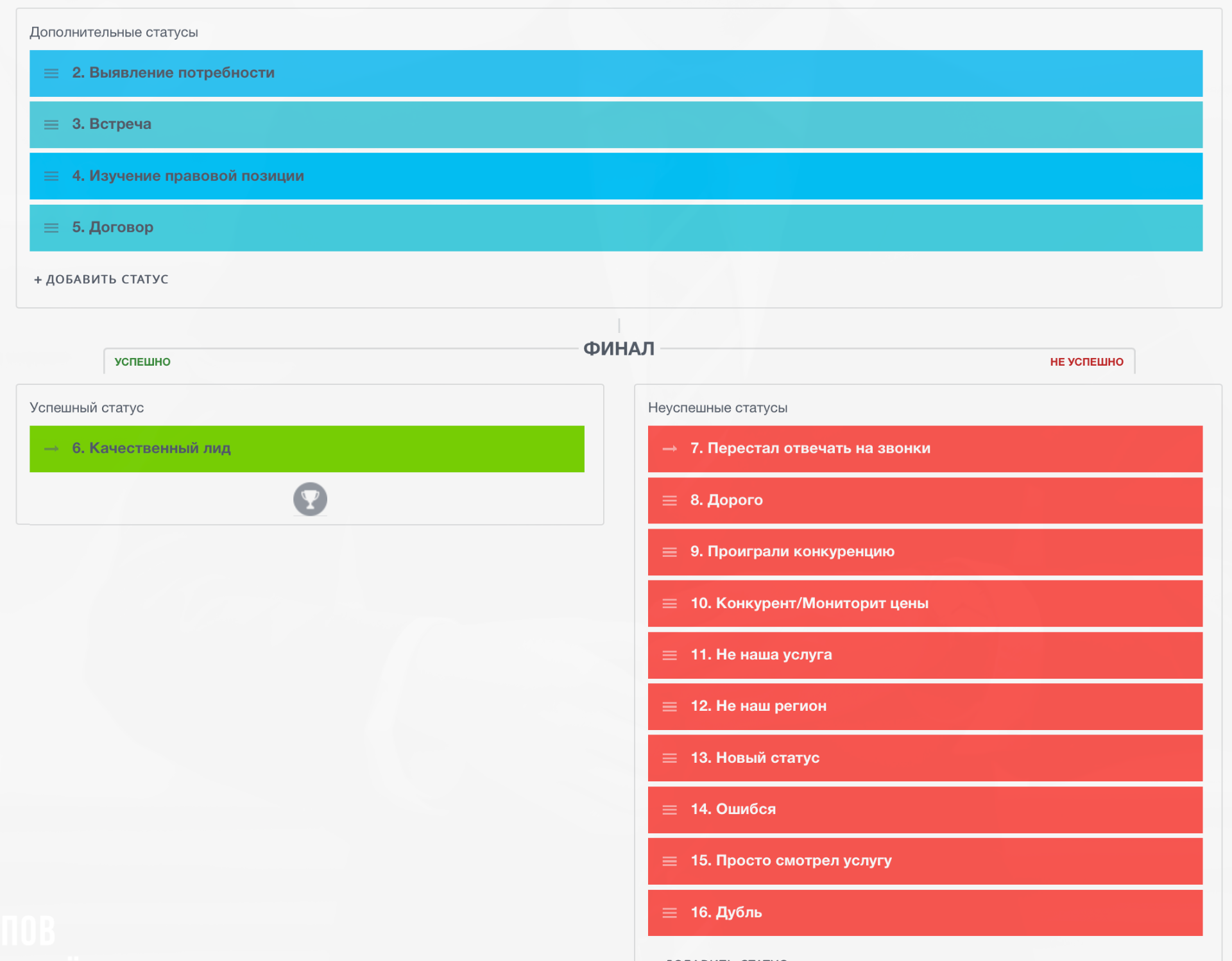 2) воронка CRM c неограниченным количеством направлений сделок;